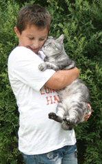 Sammy ist glücklich, weil ihm ANIfit so gut schmeckt - und Julian ist glücklich, weil Sammy dank ANIfit so gesund ist!